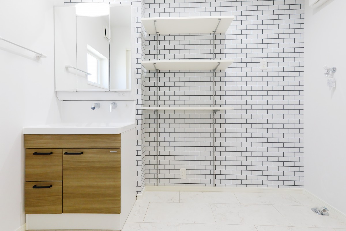 ◎洗面脱衣室:タオルを置ける棚付き!広々としているため、ライフスタイルによって空間の使い方の幅が広がります♪