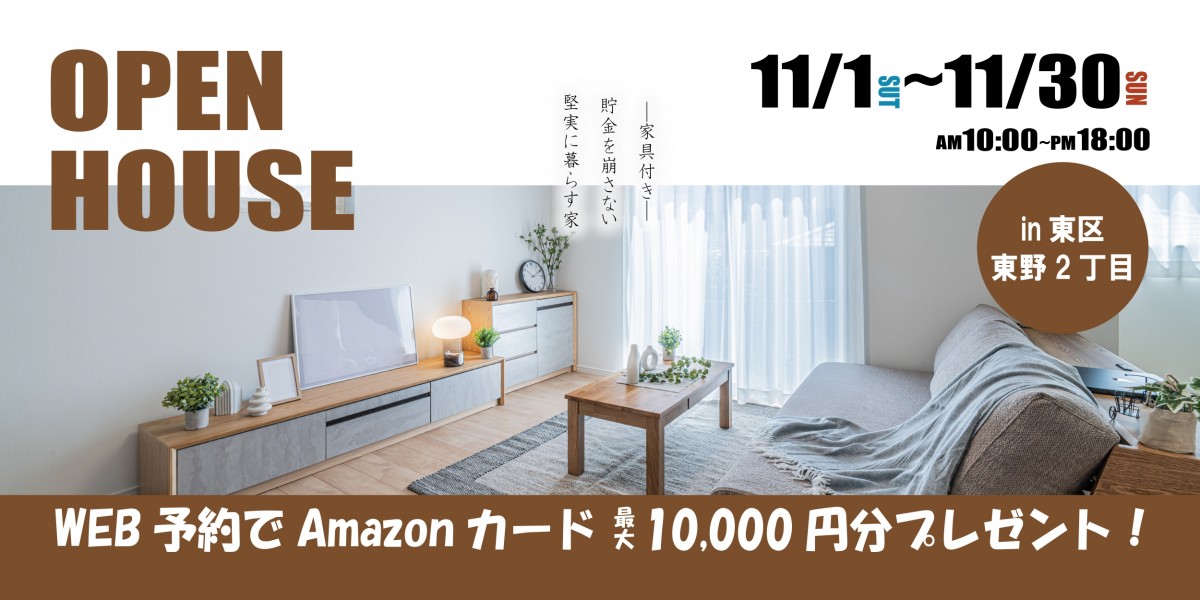 ご来場予約キャンペーン対象物件として『Amazonギフトカード最大10,000円分』プレゼント中です!(※諸条件あり)