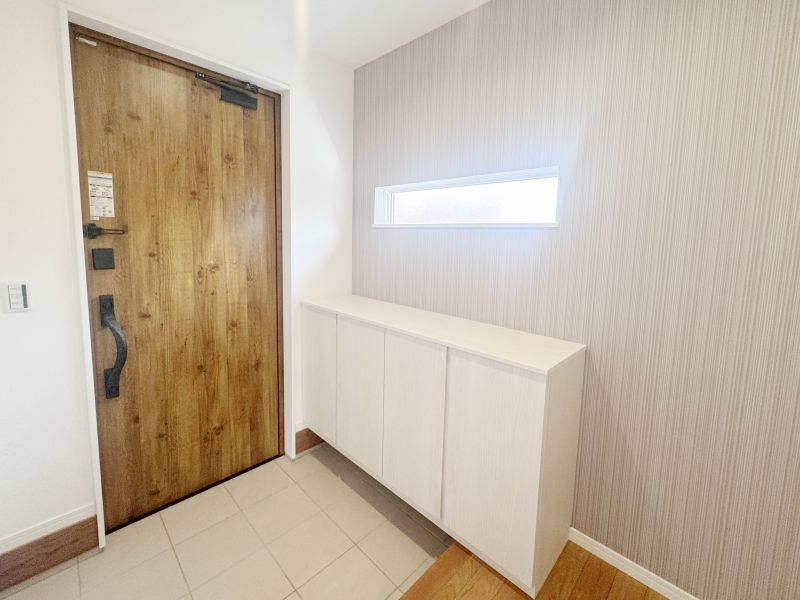 【玄関】シューズボックスもありますので、靴収納にも困りません! 玄関のアクセントクロスがオシャレです♪