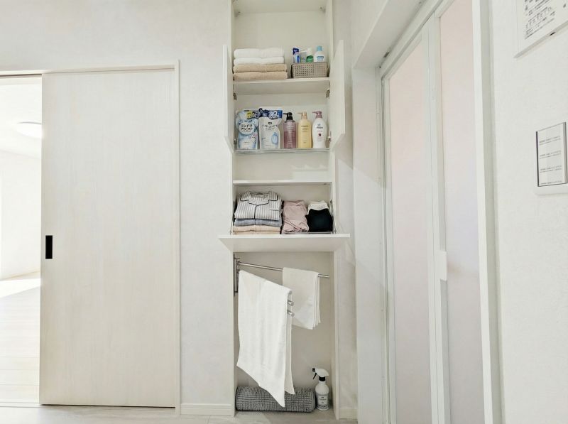 面脱衣室の収納♪ ※収納に備品等をイメージしてみました♪