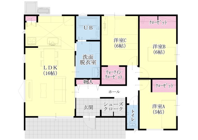 玄関収納:シューズクローク付き。靴はもちろん、ベビーカーや趣味の道具も収納できます♪