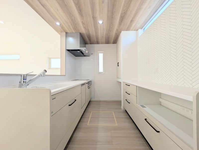 キッチン:ホーロー加工の幅2550のキッチン。お子様とお料理するにもゆとりがあります♪傷がつきにくいのも特徴♪