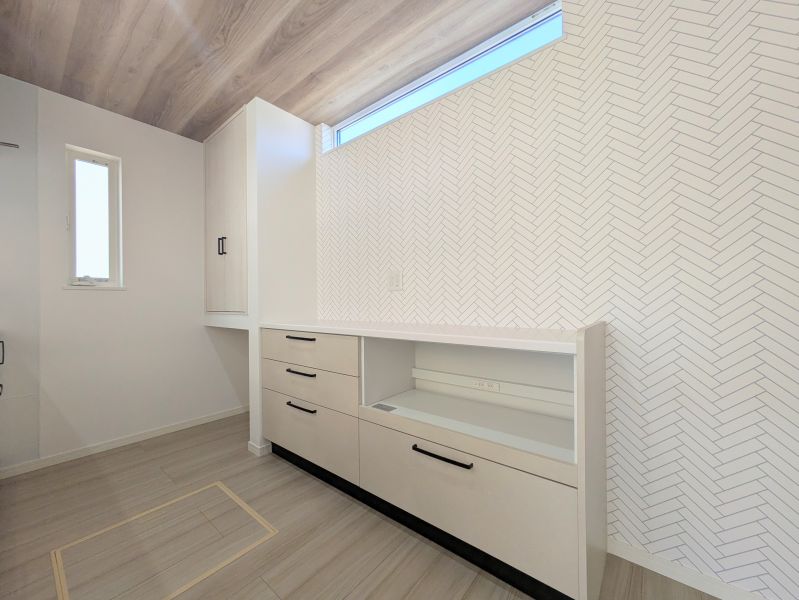カップボードも備えており、ご家族分の食器にも十分な収納力です!