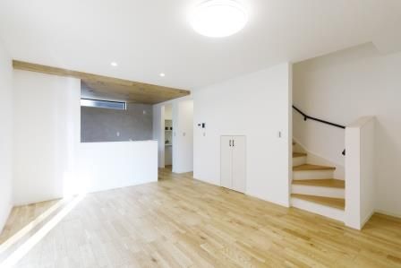 【LDK】 リビング階段があれば、家族の日常を身近に感じながら、家族の様子を見守ることができます。 17.2帖のLDKなので、ソファやダイニングテーブルを置いてもゆとりあるスペースです!