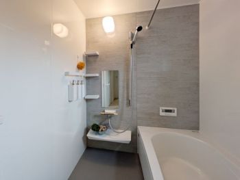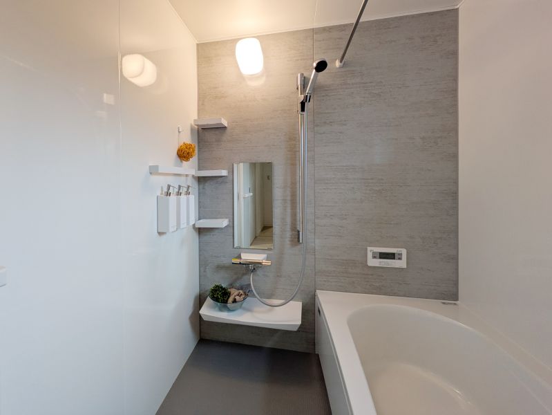 【浴室】 ホーロー加工された1616サイズの浴室。傷がつきにくく、汚れも落ちやすく、キレイが長続きします。 金属の壁なのでマグネットアイテムで浮かせる収納♪