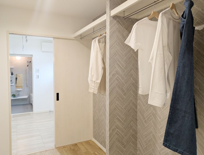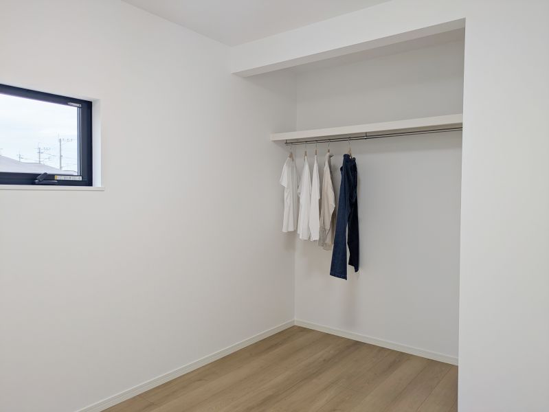 【W.I.C】 2階8.8帖主寝室のW.I.C。寝室のウォークインクローゼットには普段のお洋服だけでなく季節ものの荷物も収納できます。