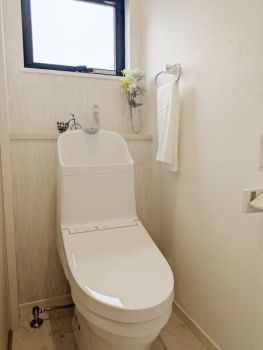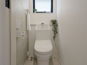 【1階 トイレ】 多機能で使いやすく、お手入れしやすい工夫が詰まったトイレを採用。キレイを保て節電節水効果も有。