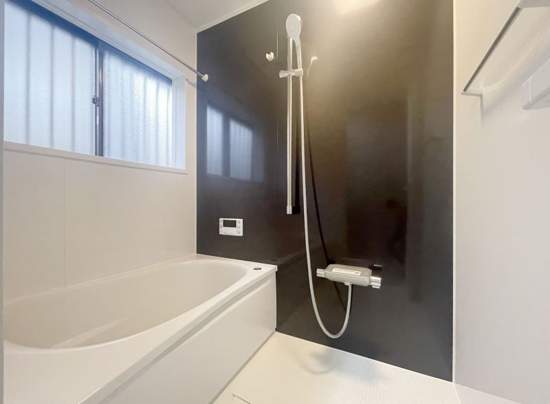 【浴室】新品に交換済みの清潔感溢れる浴室。窓付きで自然換気がスムーズなため、カビの発生を抑え清潔に保てます。一日の疲れを癒やす、心地よく開放的なバスタイムを。