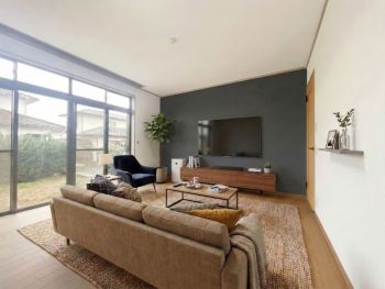 【洋室】1階8帖洋室。家族みんなが集まれるリビングとしても使用できるよう内装をイメージしてみました♪ ※家具・家電等はイメージです。