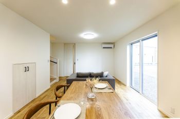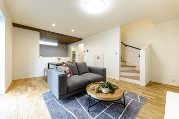 リビング階段があれば、家族の日常を身近に感じながら、リアルタイムで家族の様子を見守ることができます。自然に家族と一緒に過ごすことができる快適な空間に実際に家具を配置してみました♪
