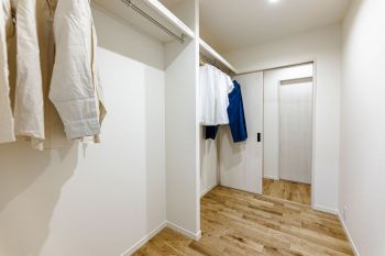 玄関ホールと洗面脱衣室の両方から出入り出来るウォークインクローゼット。