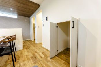 玄関ホールと洗面脱衣室の両方から出入り出来るウォークインクローゼット。収納スペースに家族のものをまとめて収納可。ファミリークロークとして使えて便利♪