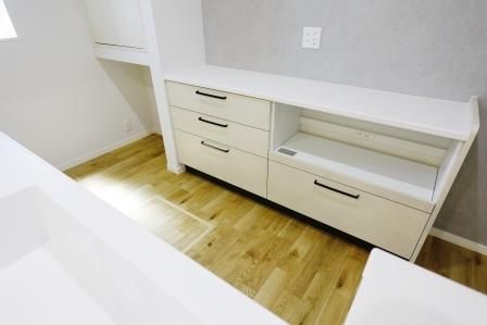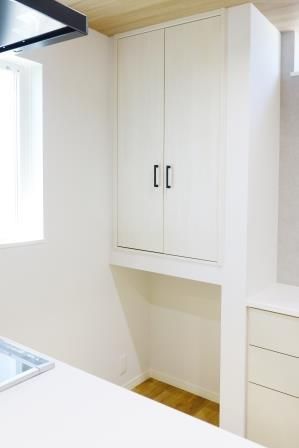 カップボードの隣には収納付きでキッチンがスッキリ片付きます♪