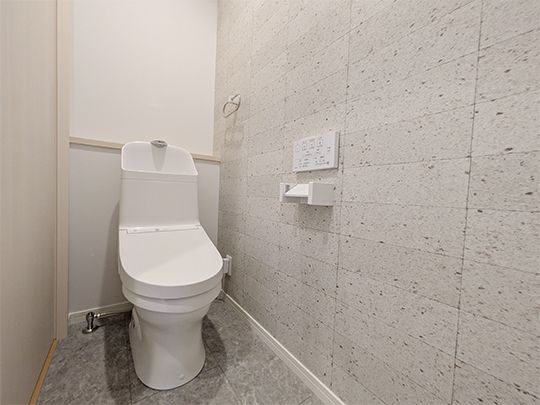 多機能で使いやすく、お手入れしやすい工夫が詰まったトイレを採用。キレイを保て節電節水効果も有。