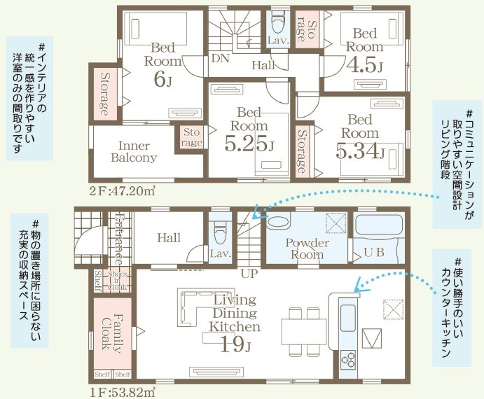 1階 19帖LDK。リビング階段。ファミリークローク付き♪