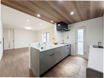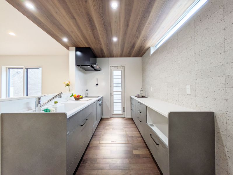 折下げ天井が、まるでカフェのような素敵なキッチン空間を実現しました。