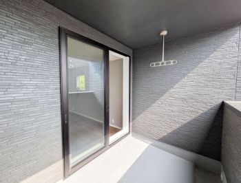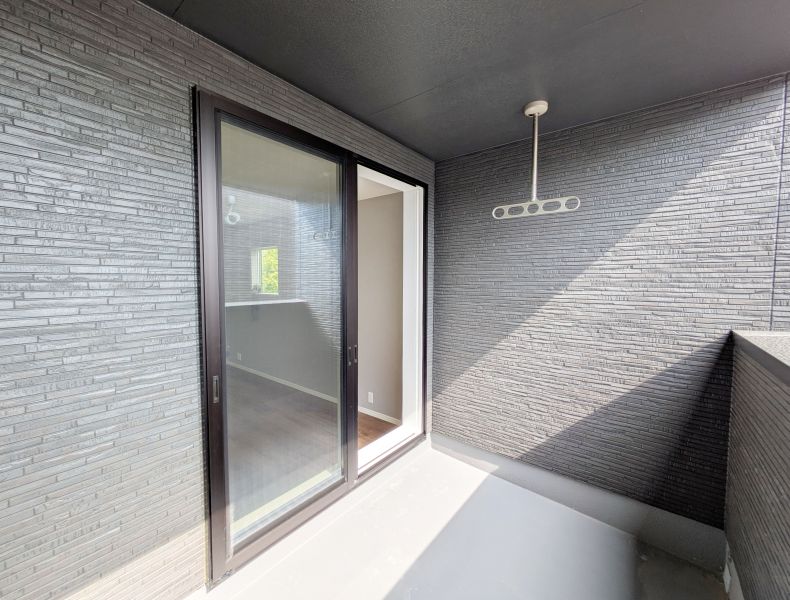 8.7帖の主寝室に面したバルコニー。インナーバルコニーなので雨の日も洗濯物が濡れにくくて助かります♪