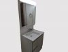 ※同仕様写真。三面鏡タイプの洗面台。鏡裏は収納スペース。インナーホース式のシャワーノズル。シンク下も収納できます。