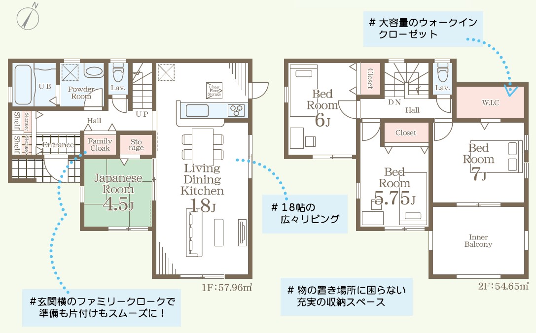 合志小学校まで徒歩約14分♪来客時も安心の4台駐車可能! ゆったりとしたくつろぎの空間のある34坪4LDK。 18帖の広々リビング。リビング横に4.5帖和室。 玄関横にファミリークロークがあり、準備も片付けもスムーズに! 2階全居室5帖以上♪ 2階7帖洋室にW.I.Cあり♪ 広々インナーバルコニーで雨の日の洗濯物も安心♪ 全3棟販売!