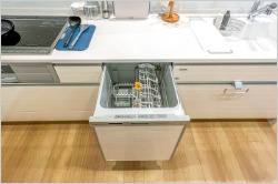 食器洗い乾燥機|深型の食洗機を採用しているので、フライパンもそのまま入れれます♪ 毎日の食器洗いの手間が省け、毎日のちょい楽につながります!