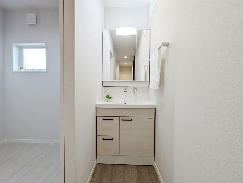 【独立洗面台】三面鏡付きで、化粧水などの収納も◎スッキリとした洗面台を保てます♪
