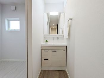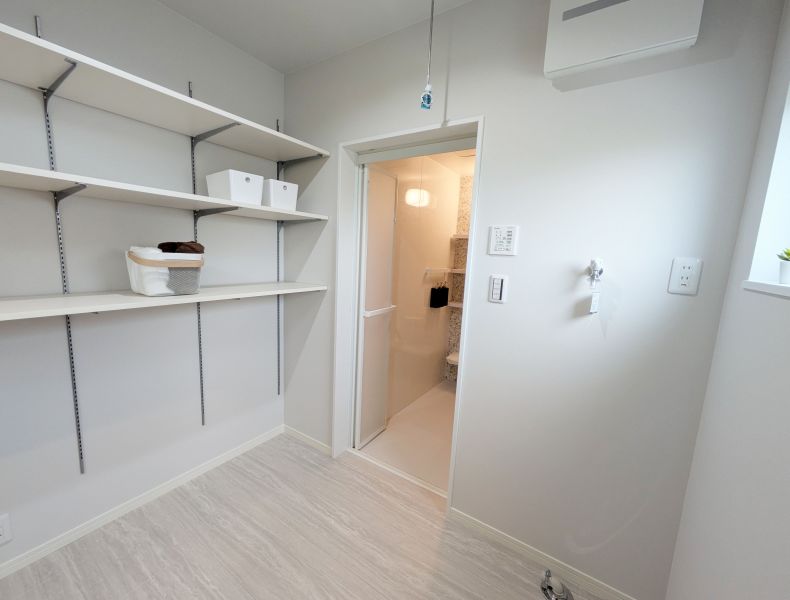 【脱衣室】収納棚があるので、タオルや洗剤など日常使用するものを収納できます♪