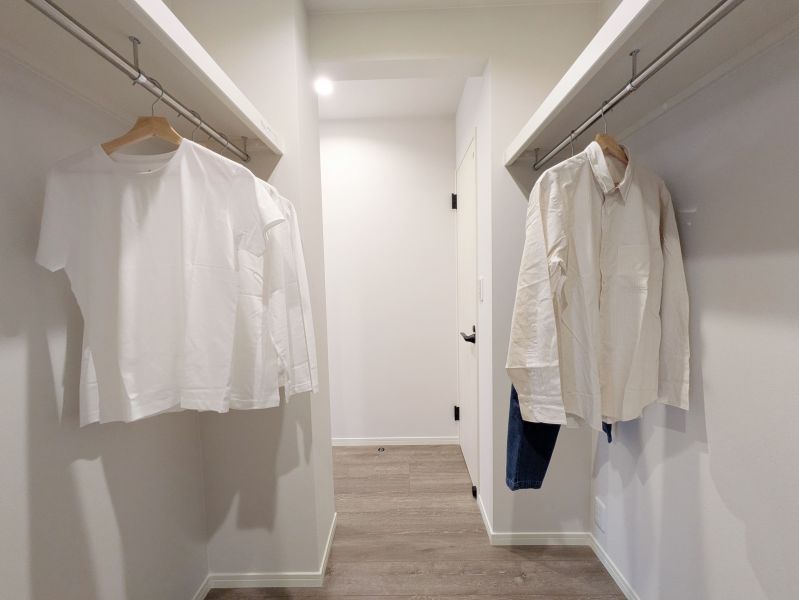 【玄関ウォークインクローゼット】毎日着るジャケットやコート、レインコートなどをかけることができます◎