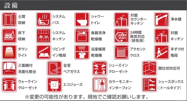 都市ガス、下水道、システムキッチン、追焚機能、洗髪洗面化粧台、床下収納、ウォークインクローゼット、モニタ付インターホン、温水洗浄便座、カウンターキッチン、浴室乾燥機、食器洗浄乾燥機、バス専用,トイレ専用,バス・トイレ別,シャワー,コンロ(ガス),コンロ口数(三口),給湯,洗濯機置き場室内,バルコニー,フローリング,洗面所独立,クローゼット,シューズボックス,オートバス |
