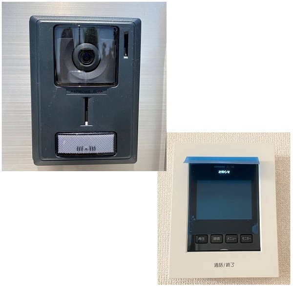 インターホン。大画面モニターで玄関先を確認できます。夜間の訪問者の顔も確認できるLEDライトを装備。 ※同仕様写真