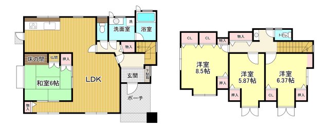 6帖の和室は、お子様の遊び場やお昼寝、来客用の寝室にと多様な用途で使えます♪