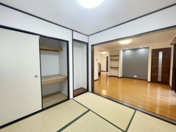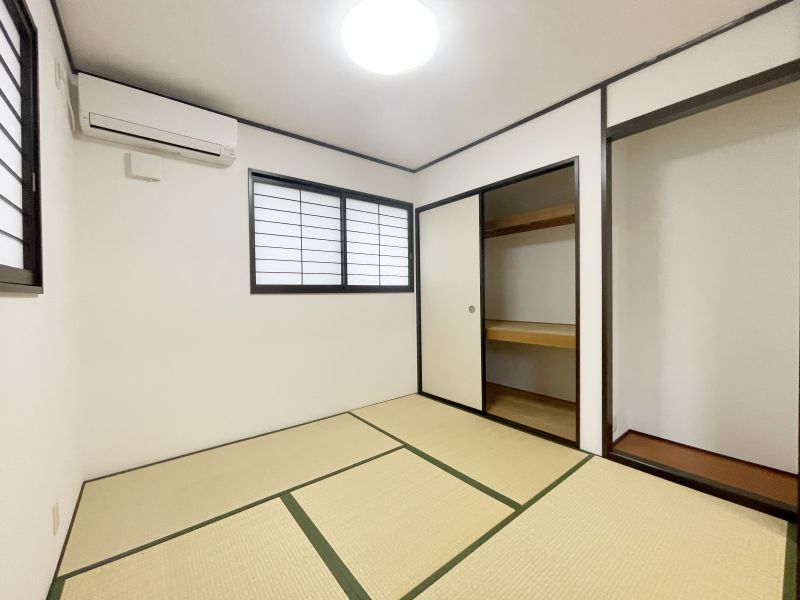 【和室】押し入れと床の間を備えた4.5帖の和室は、来客時や小さなお子様の寝室に重宝します。リビング隣接で使い勝手が良く、伝統的な趣と実用性を兼ね備えた空間です。