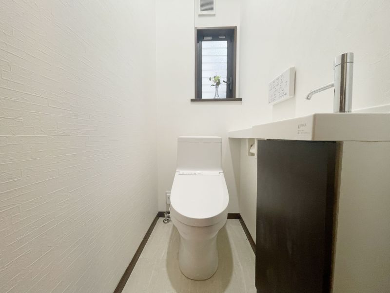 【1階トイレ】ウォシュレット機能付きトイレです♪ 手洗い場やペーパーホルダーも完備です♪