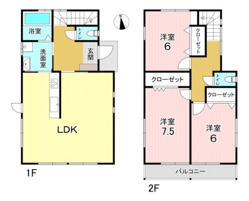 【バルコニー】2階7.5帖洋室から見たバルコニー