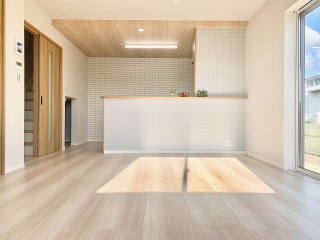 【1階 15.7帖LDK】※同仕様写真。 キッチンにはパントリーあり♪パントリーは、小物が多いキッチンに最適!扉付きで転倒防止になり、すっきり隠せます。