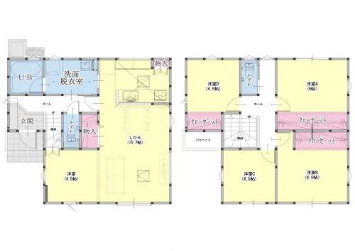 【寝室】※同仕様写真。 2階3部屋はオープンクローゼットを採用。圧迫感のない洋室。デットスペースがなく家具の配置がしやすいのも魅力です♪