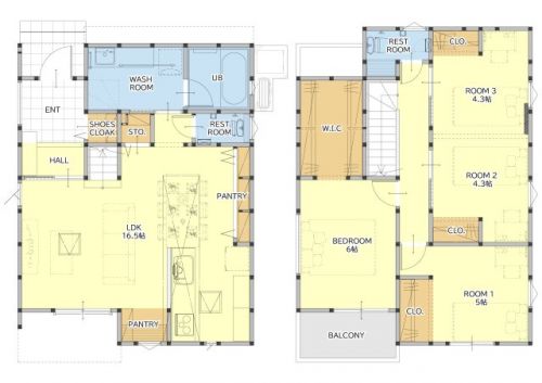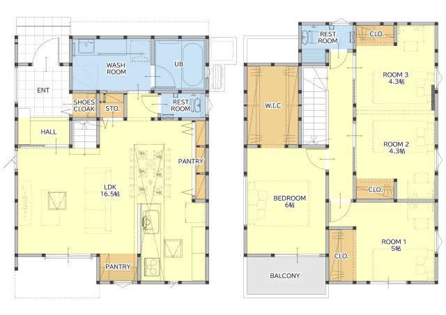 【1階 16.5帖LDK】※同仕様写真。 キッチンには2ヵ所のパントリーあり♪パントリーは、小物が多いキッチンに最適!扉付きで転倒防止になり、すっきり隠せます。