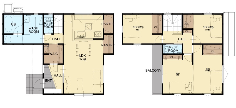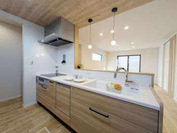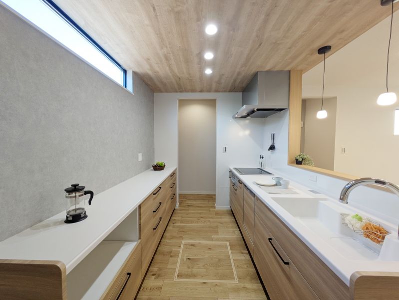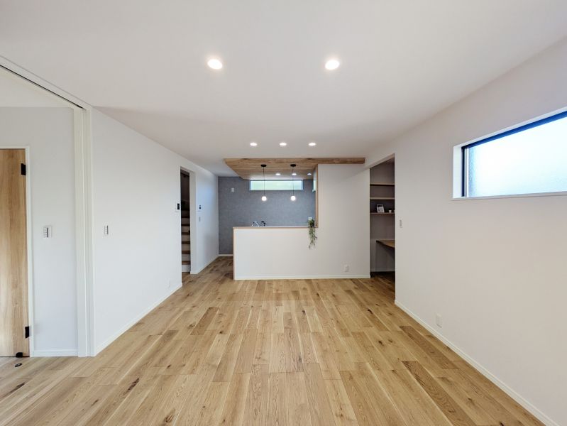 16帖の広々LDKに、便利なパントリーを完備。ストック品をスッキリ隠せて、生活感のない美しいキッチンと開放感を両立します。