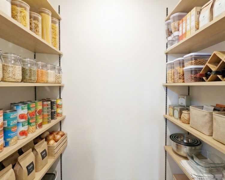 買いだめした食品や調理家電をスッキリ収納。キッチンを美しく保てるだけでなく、在庫管理もスムーズになり家事効率を上げます。※備品等はイメージです。