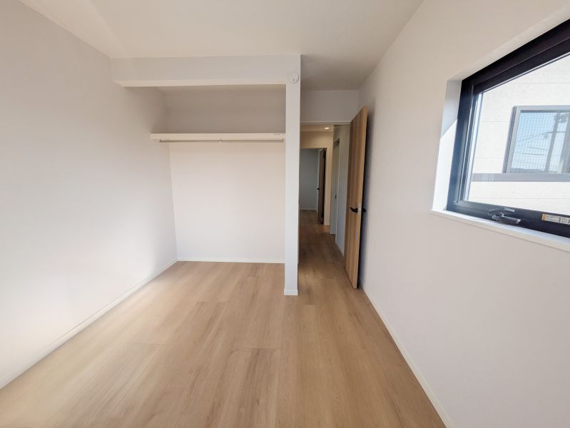 2階5帖の洋室は扉のないオープンクローゼット仕様。出し入れがスムーズで、お気に入りの服を飾るように収納できる開放的な空間です。