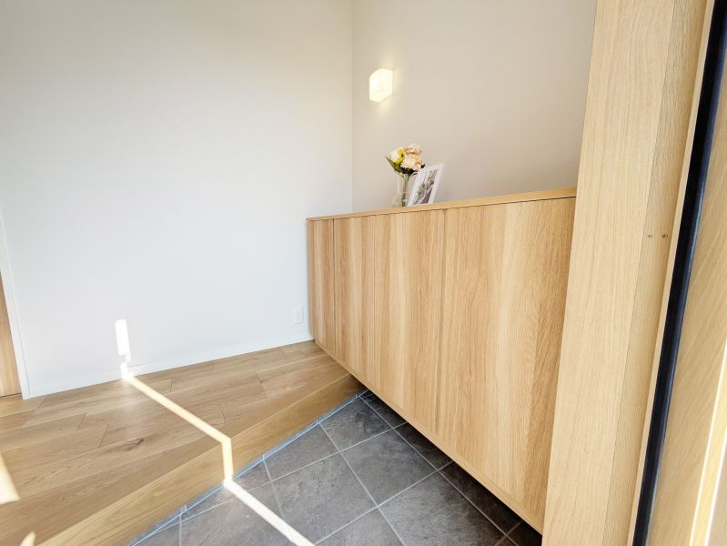 シューズボックスを完備し、家族全員の靴をスッキリ収納。玄関を常に美しく保てるため、急な来客時も慌てずお迎えできます。