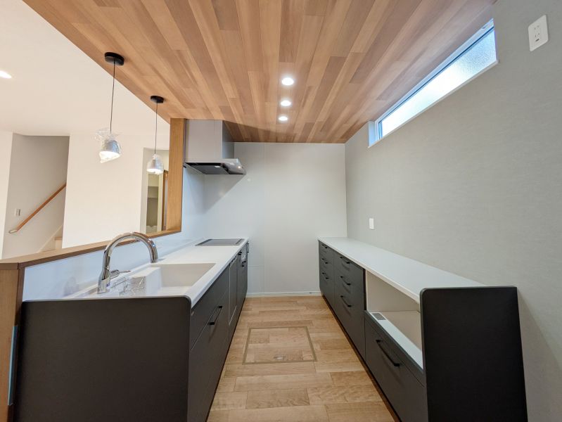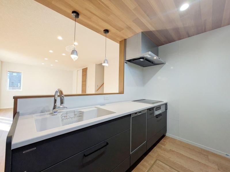 カップボード、食洗機、IHを完備。充実の設備が家事負担を軽減し、統一感のある美しいキッチンで料理の時間が楽しくなります。