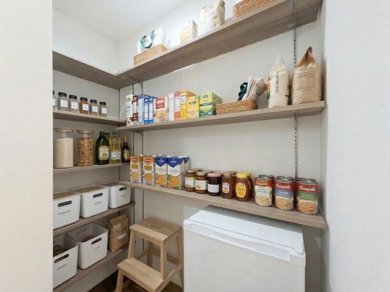 キッチン横のパントリーに備品や小型冷凍庫をイメージしてみました♪ ※家電や備品等はイメージです。
