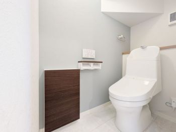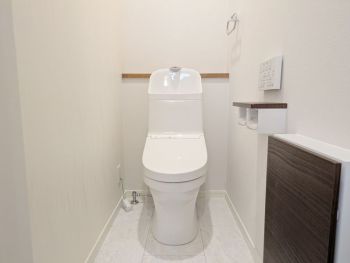 2階にも便利な収納付きトイレを設置。トイレットペーパーや掃除用品をスッキリ隠せて、清潔感のある空間を保つことができます。