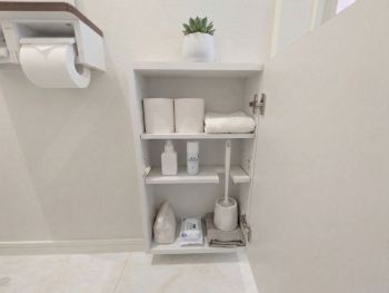 2階トイレの収納に備品等をイメージしてみました♪ ※備品等はイメージです。