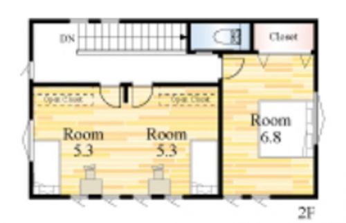 【洋室】2階5.3帖+5.3帖洋室。将来2部屋に分けられるお部屋です♪