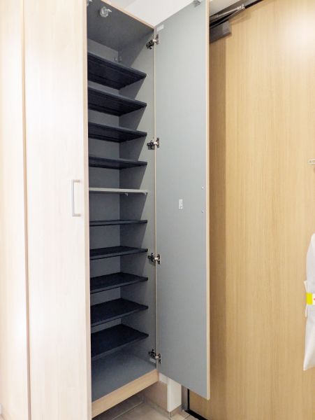シューズボックス。大容量の靴を収納可。樹脂製の棚板は水洗い出来てお手入れ簡単。