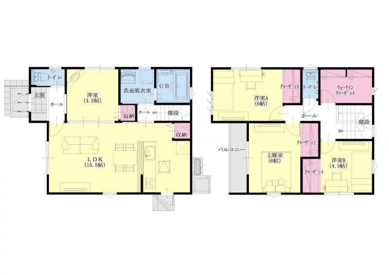 15.5帖のLDK。リビング隣洋室設計で圧迫感のない、自然と家族が集う憩いの空間に♪