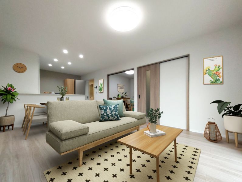 15.5帖のLDK。リビング隣洋室設計で圧迫感のない、自然と家族が集う憩いの空間に♪