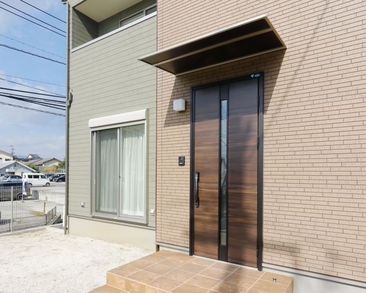 玄関ドア。内部に断熱材があるため、夏涼しく、冬暖かい空間を。二重ロックとサムターンキーで防犯性も良。