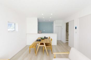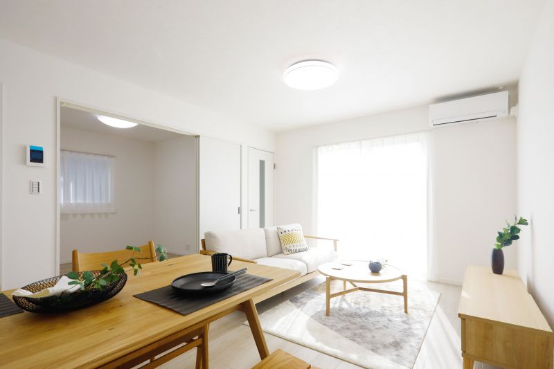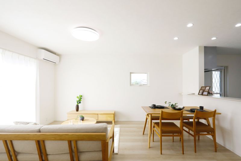 リビングとダイニングが緩やかにつながるオープンプランで、家族の会話が自然に生まれる設計。食事やくつろぎの時間を一緒に過ごせる、心地よい距離感が魅力です。